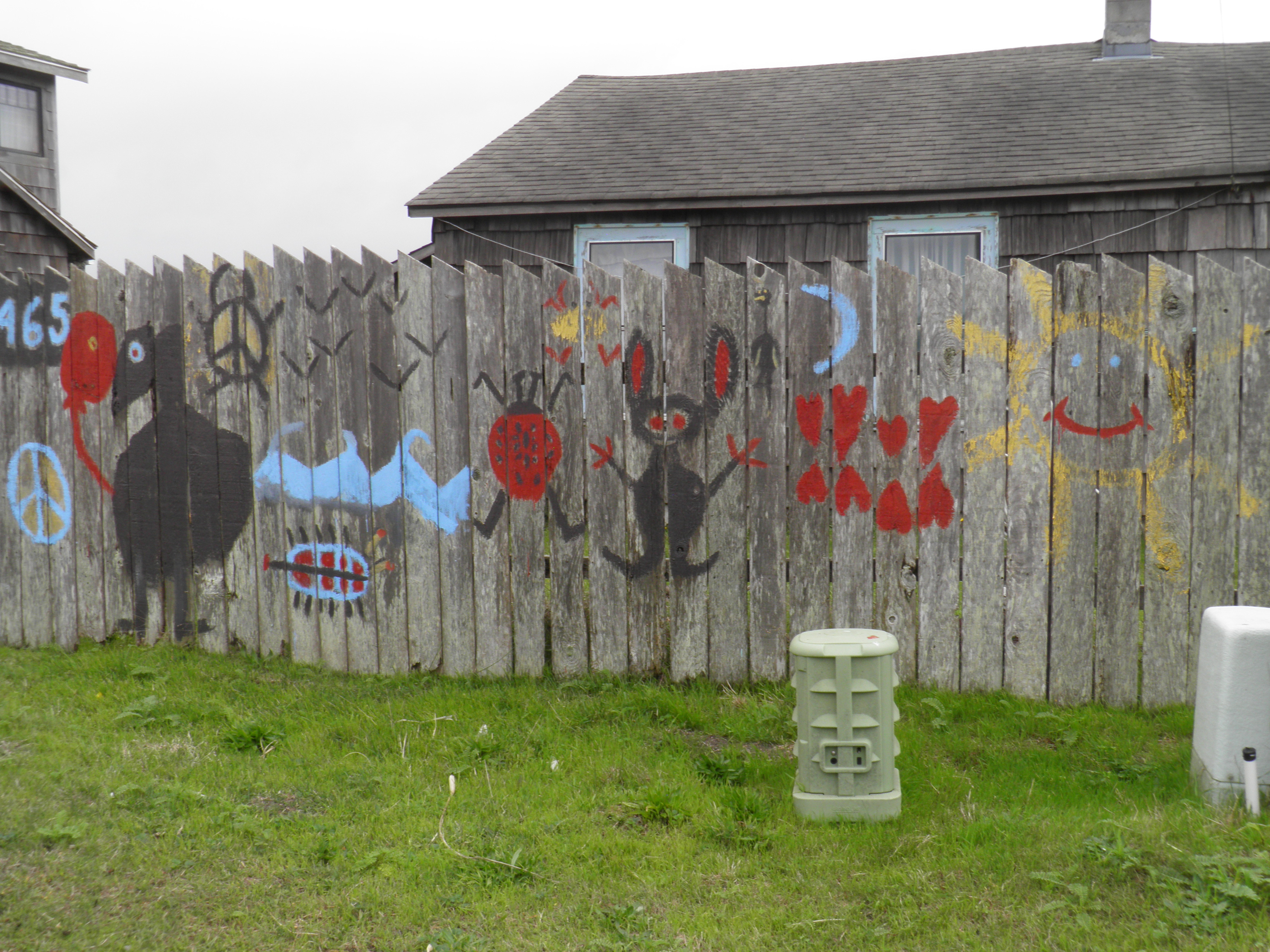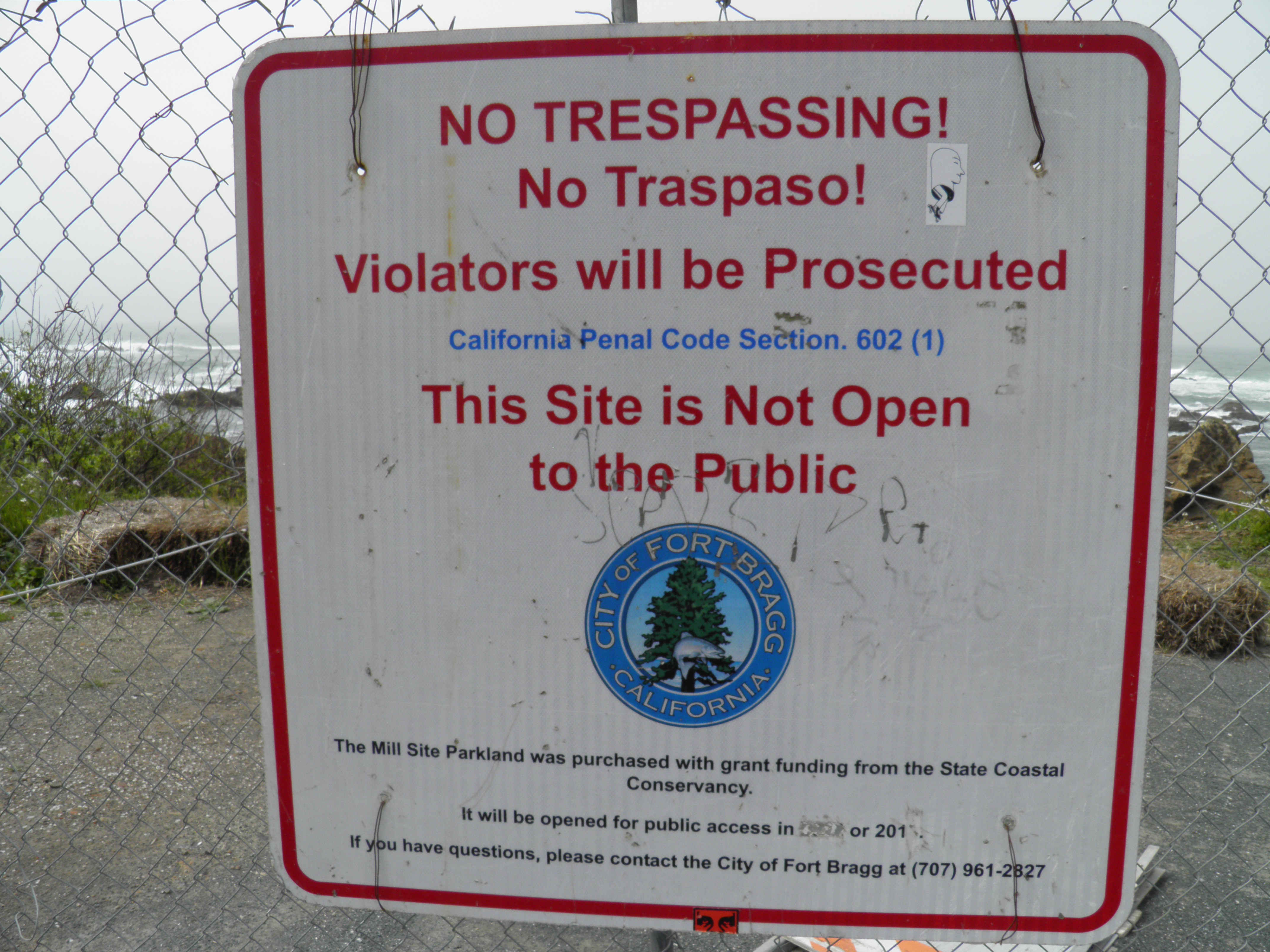 Today, when I arrived at Glass Beach, I found graffiti spray painted in foamy white letters on the retaining wall that holds part of the bank back from the sea. “Litter Beach” the words spelled out, and under that, “Denial?” In those words, and in the local paper, I read of a push for a Glass Beach clean-up.