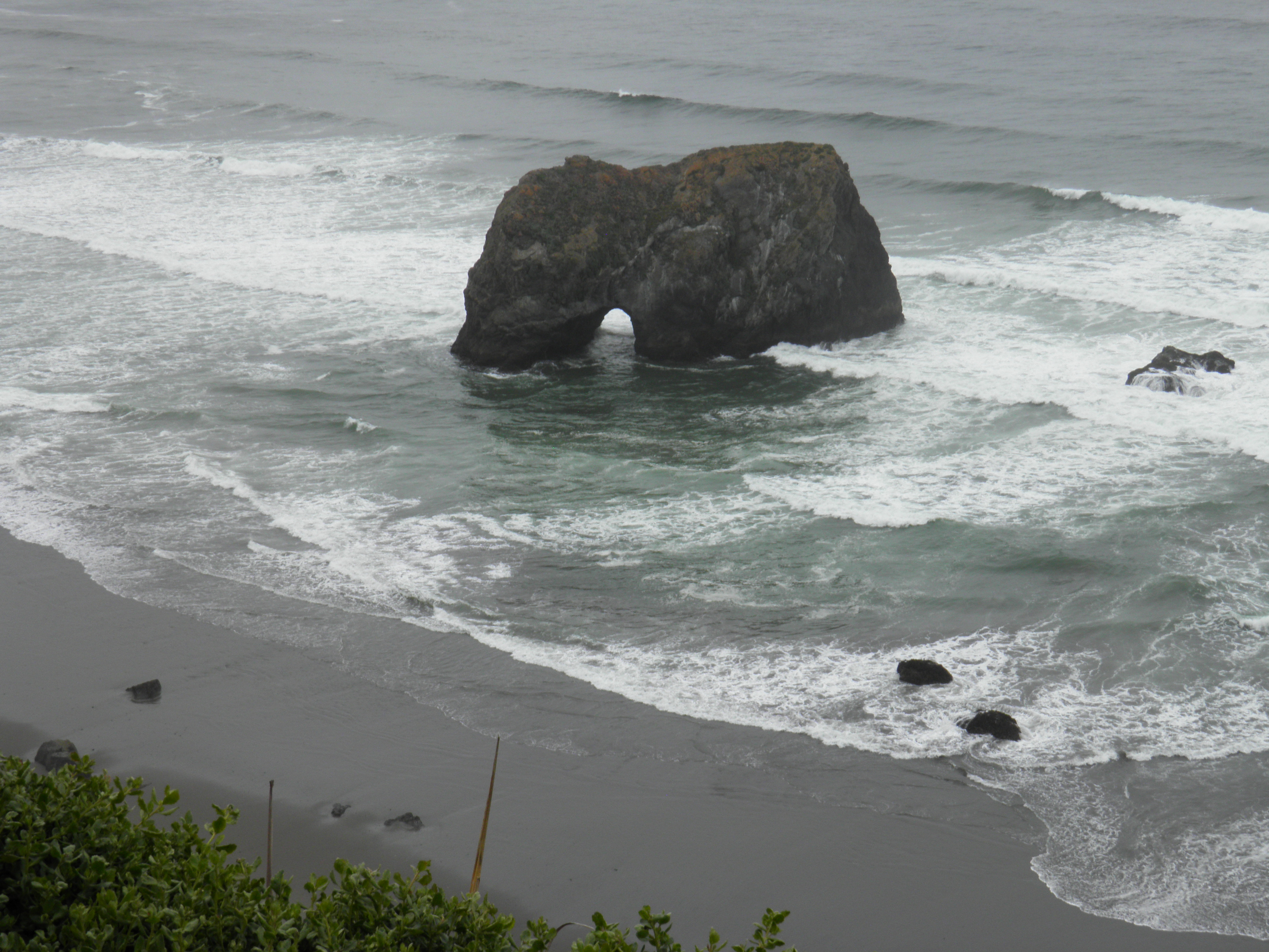 This time, we were collecting glass for our friends, whose daughter is getting married this summer. Karen, the mother of the bride, intends to create tiny succulent gardens in wine glasses for party favors, and a few polished pebbles from MacKerricher State Beach and a few pieces of glass from Glass Beach will adorn each little garden. We spent a pleasant couple of hours sorting and picking glass.